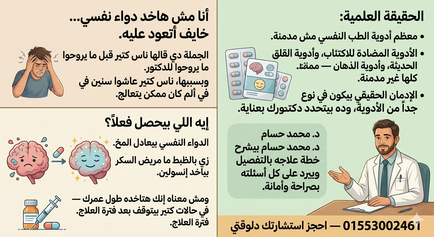 مضادات الاكتئاب، وأدوية القلق الحديثة، وأدوية الذهان — كلها أدوية علاجية وليست مُخدِّرة.